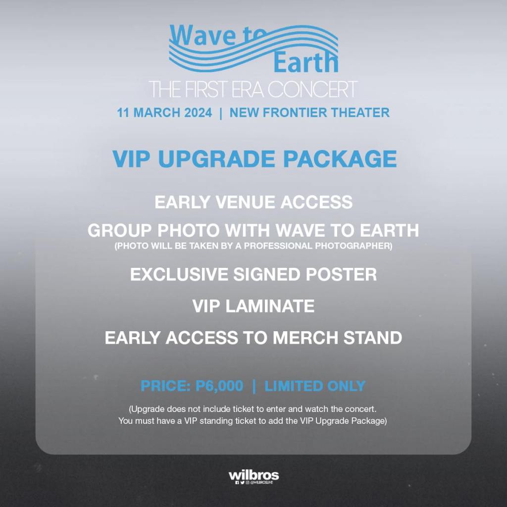 For VIP Standing tickets, click here: https://www.etix.com/ticket/p/89392843/wave-to-earth-the-first-era-concert-day-2-march-13-quezon-city-new-frontier-theater. Take note that only those who availed of the VIP tickets