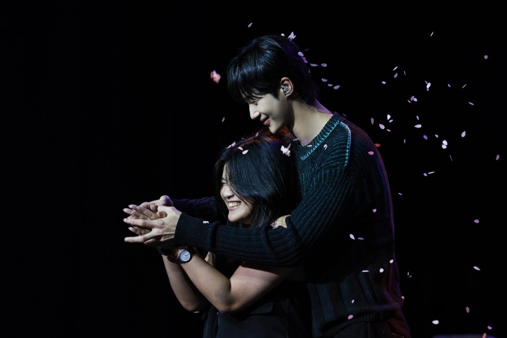 The fan meeting itself was filled with much joy and excitement. Byeon Woo Seok delighted fans by strutting onstage like the fashion model that he is, then segued into recreating iconic scenes from Lovely Runner, namely the photobooth and cherry blossom scenes. When he and a lucky fan did the former, the theater erupted in cheers. The recreation of the cherry blossom scene elicited gasps and thunderous applause from the audience.