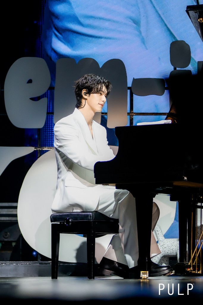 Dressed in an eye-catching all-white ensemble, Lee Chae-min opened the show by playing the grand piano, enchanting the audience with a performance of “Stay With Me,” a soundtrack from Bon Appétit, Your Majesty. During his greeting, he happily noted how many fans had come and shared that their cheers made playing the piano even more enjoyable.